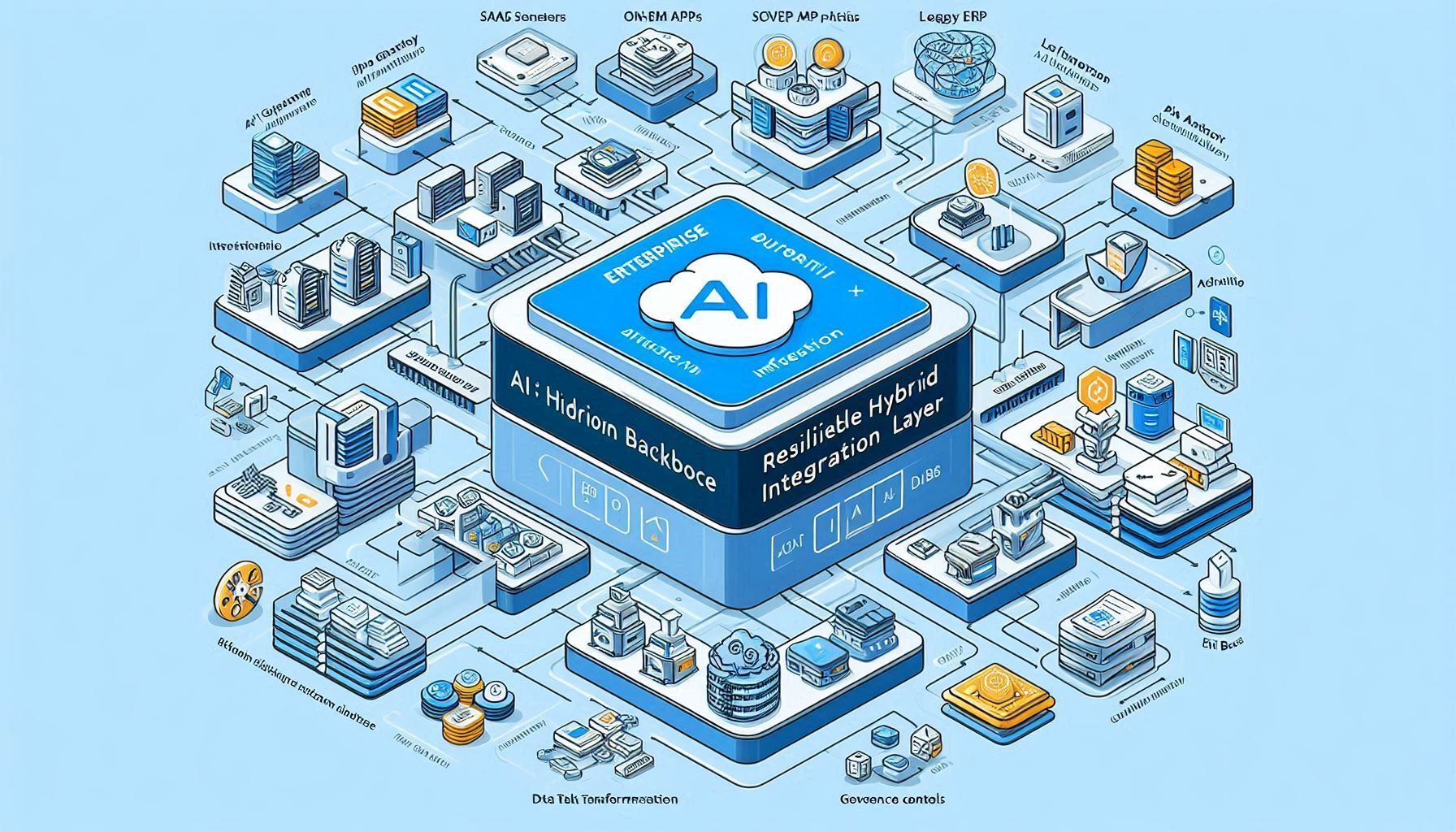 Without resilient hybrid integration layers, this architecture would collapse into brittle scripts and manual patchwork.